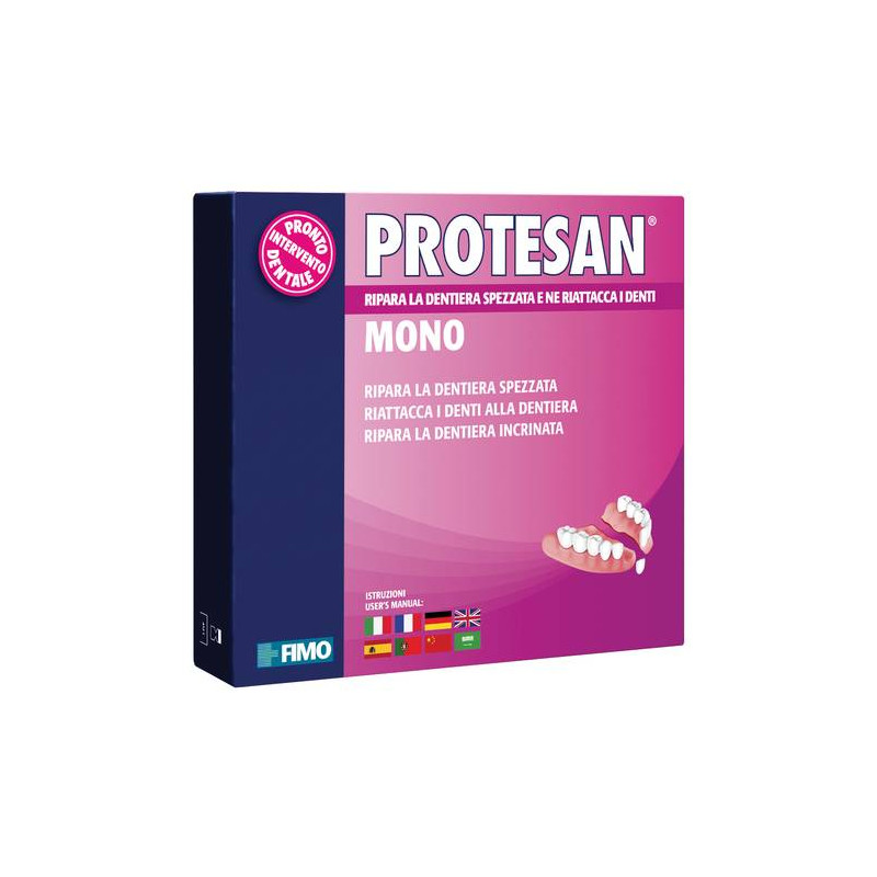 Resina per riparare la dentiera spezzata, lesionata o che ha perso un debte, Agisce in 20 minuti, non compromette il successivo intervento del tecnico, non contiene sostanze cianoacrilate allergizzanti o nocive.