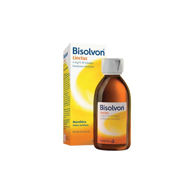 AVVERTENZE Il trattamento con Bisolvon comporta un aumento della secrezione bronchiale (questo favorisce l'espettorazione). Non usare per trattamenti protratti. Nel trattamento di condizioni respiratorie acute, consultare il medico se i sintomi non migliorano o peggiorano nel corso della terapia. Sono stati segnalati casi di reazioni cutanee gravi quali eritema multiforme, sindrome di Stevens-Johnson (SJS)/necrolisi epidermica tossica (TEN) e pustolosi esantematica acuta generalizzata (AGEP) associati alla somministrazione di bromexina cloridrato. Se sono presenti sintomi o segni di rash cutaneo progressivo (talvolta associato a vesciche o lesioni della mucosa), il trattamento con bromexina cloridrato deve essere interrotto immediatamente e deve essere consultato un medico. La maggior parte di queste reazioni potrebbe essere spiegata dalla gravita' di malattie sottostanti o da altri farmaci assunti contemporaneamente. Inoltre nella fase iniziale della sindrome di Stevens Johnson o della necrolisi epidermica tossica (NET), i pazienti potrebbero inizialmente avvertire dei sintomi non specifici simili a quelli dell'influenza, come per esempio febbre, brividi, rinite, tosse e mal di gola. A causa di questi sintomi fuorvianti e' possibile che venga intrapreso un trattamento sintomatico con una terapia per la tosse e il raffreddore. I mucolitici possono indurre ostruzione bronchiale nei bambini di eta' inferiore ai 2 anni. Infatti la capacita' di drenaggio del muco bronchiale e' limitata in questa fascia d'eta', a causa delle caratteristiche fisiologiche delle vie respiratorie. Essi non devono quindi essere usati nei bambini di eta' inferiore ai 2 anni (vedere paragrafo 4.3). Il medicinale contiene maltitolo liquido: la dose massima giornaliera raccomandata di Bisolvon 4 mg/5ml contiene 15 g di maltitolo (30 g in caso di aumentata dose giornaliera negli adulti all' inizio del trattamento), pazienti affetti da rari problemi di intolleranza al fruttosio non devono assumere questo medicinale. Questo medicinale puo' avere un blando effetto lassativo. CATEGORIA FARMACOTERAPEUTICA Mucolitico. CONSERVAZIONE Questo medicinale non richiede alcuna condizione particolare di conservazione. CONTROINDICAZIONI/EFF.SECONDAR Ipersensibilita' al principio attivo o ad uno qualsiasi degli eccipienti. Il farmaco e' controindicato nei bambini di eta' inferiore ai 2 anni. In caso di condizioni ereditarie che possono essere incompatibili con uno degli eccipienti (vedere 4.4). Non ci sono controindicazioni assolute, ma in pazienti con ulcera gastroduodenale, se ne consiglia l'uso dopo aver consultato il medico. Controindicato durante l'allattamento (vedere paragrafo 4.6). DENOMINAZIONE BISOLVON LINCTUS 4 MG/5 ML SCIROPPO GUSTO CIOCCOLATO-CILIEGIA ECCIPIENTI Acido benzoico, maltitolo liquido, sucralosio, aroma cioccolato, aroma ciliegia, levomentolo, acqua depurata. EFFETTI INDESIDERATI Le frequenze sono definite secondo la seguente convenzione: molto comune: >= 1/10; comune: >= 1/100, < 1/10; non comune: >= 1/1.000, < 1/100; raro: >= 1/10.000, < 1/1.000; molto raro: < 1/10.000; non nota: la frequenza non puo' essere definita sulla base dei dati disponibili. Disturbi del sistema immunitario. Raro: reazioni di ipersensibilita'; non nota: reazioni anafilattiche, tra cui shock anafilattico, angioedema e prurito. Patologie respiratorie, toraciche e mediastiniche. Non nota: broncospasmo. Patologie gastrointestinali. Non comune: nausea, vomito, diarrea e dolore addominale superiore. Patologie della cute e del tessuto sottocutaneo. Raro: rash, orticaria; non nota: reazioni avverse cutanee gravi (tra cui eritema multiforme, sindrome di Stevens-Johnson/necrolisi epidermica tossica e pustolosi esantematica acuta generalizzata). Segnalazione delle reazioni avverse sospette. La segnalazione delle reazioni avverse sospette che si verificano dopo l'autorizzazione del medicinale e' importante, in quanto permette un monitoraggio continuo del rapporto beneficio/rischio del medicinale. Agli operatori sanitari e' richiesto di segnalare qualsiasi reazione avversa sospetta tramite il sistema nazionale di segnalazione all'indirizzo http://www.agenziafarmaco.gov.it/it/responsabili. GRAVIDANZA E ALLATTAMENTO Non sono stati condotti studi volti ad indagare gli effetti sulla fertilita' umana. Basandosi sull'esperienza preclinica non vi sono indicazioni di possibili effetti sulla fertilita' a seguito dell'uso della bromexina. Vi sono dati limitati sull'uso della bromexina nelle donne in gravidanza. Studi sugli animali non indicano effetti nocivi diretti o indiretti con riguardo alla tossicita' riproduttiva. Come misura precauzionale, e' preferibile evitare l'uso di Bisolvon durante la gravidanza. Non e' noto se la bromexina e i suoi metaboliti passino nel latte umano. I dati di farmacodinamica e tossicologia disponibili sugli animali hanno mostrato l'escrezione della bromexina e dei suoi metaboliti nel latte materno. Un rischio per i bambini allattati al seno non puo' essere escluso. Bisolvon non deve essere usato durante l'allattamento. INDICAZIONI Bisolvon e' indicato nel trattamento delle turbe della secrezione nelle affezioni respiratorie acute e croniche. INTERAZIONI Non sono state riportate interazioni clinicamente rilevanti con altri medicinali. POSOLOGIA Si consigliano i seguenti dosaggi salvo diversa prescrizione medica. Adulti: 5 - 10 ml 3 volte al giorno. Negli adulti, all'inizio del trattamento, puo' essere necessario aumentare la dose totale giornaliera fino a 48 mg divisa in tre volte. Bambini di eta' superiore ai 2 anni: 2,5 - 5 ml 3 volte al giorno. Si consiglia l'assunzione del farmaco dopo i pasti. Lo sciroppo e' somministrabile a diabetici e bambini sopra i 2 anni, non contiene fruttosio ne' saccarosio. Non superare le dosi consigliate. Per misurare la dose appropriata utilizzare il bicchiere dosatore inserito nella confezione (con tacche a 1,25 ml pari a 1 mg di bromexina cloridrato, 2,5 pari a 2 mg di bromexina cloridrato e 