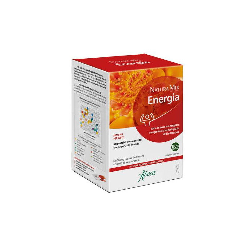 Integratore alimentare a base di ginseng, guaranà, eleuterococco e Cyanidin-3 (mix di frutti rossi), utile per avere una maggiore energia fisica e mentale, contribuire all’attività adattogena, svolgere un'azione antiossidante e per le naturali difese dell'organismo. Indicato durante i periodi di intenso studio e lavoro e per chi pratica sport.