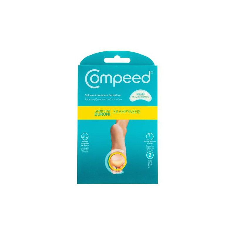 Compeed agisce come una seconda pelle e aiuta e riequilibrare il naturale livello di umidità per proteggere contro lo sfregamento e la pressione, donare sollievo immediato dal dolore dei duroni e idratare ed ammorbidire il durone per favorirne la rimozione.