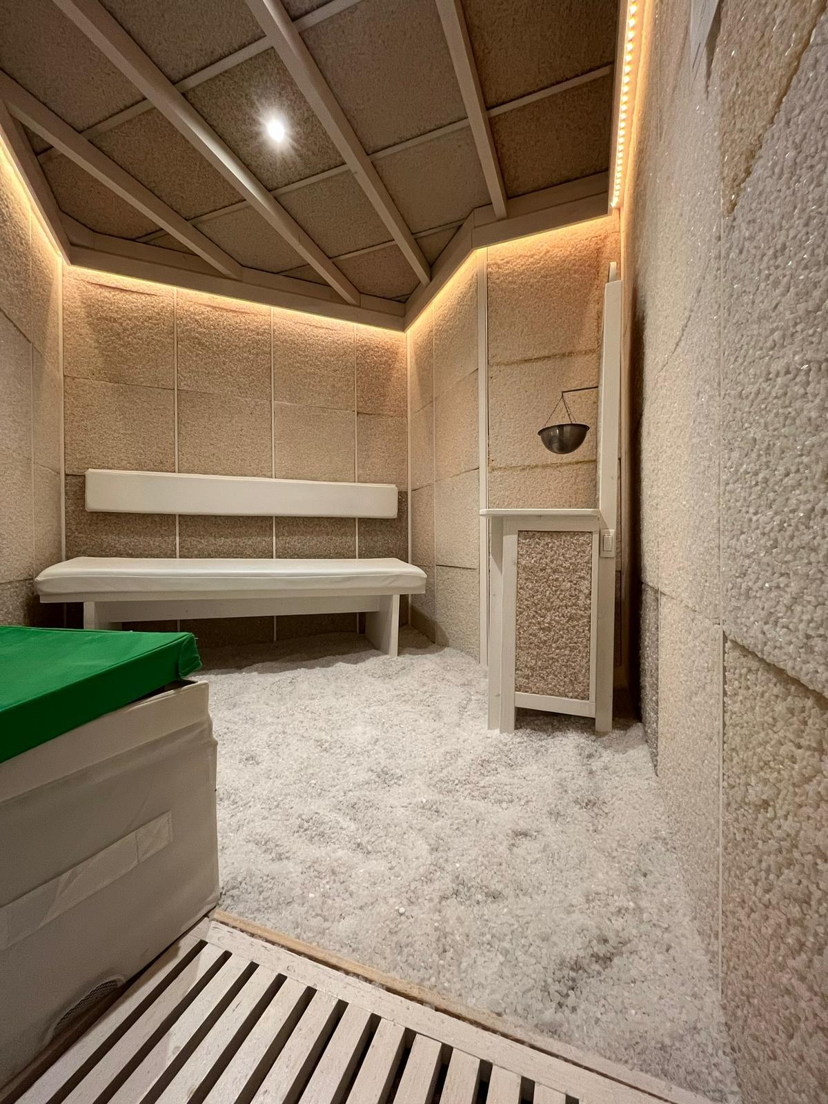 La Cabina del Sale è una stanza di sale, realizzata con materiali completamente naturali, trae ispirazione dalle tradizionaligrotte di sale, ricreando ambientazione e atmosfera, alla riscoperta del profondo benessere. Soffitto, pavimento e pareti interamente ricoperte di Salgemma, creano uno spettacolo unico, magico e suggestivo.